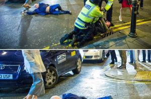 Одну из самых узнаваемых фотографий в подборке сделал Джоэль Гудман в Манчестере во время празднования нового, 2016 года. Мало того что ему удалось вписать сюжет в золотое сечение - мужчина на заднем плане лежит в позе опытного натурщика.