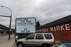 Вывеска у блошиного рынка в Ванкувере, Канада: «Придите и поищите украденные у вас вещи. Вход $ 2 по субботам и воскресеньям».