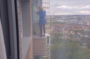 Наши люди вообще ничего не боятся. Мыть окна снаружи на 19-м этаже - легко!
