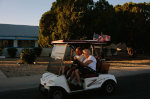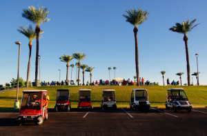 О небольших электромобилях, предназначенных для любителей покатать шары по зеленым газонам, следует рассказать особо. В городе есть обычные автомобили, но гольф-кары являются основным видом транспорта. Многие жители стариковского рая не могут водить обычную машину по медицинским показателям, поэтому с удовольствием гоняют на игрушечных машинках.