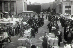 Съемка сцены пожара в Атланте во время Гражданской войны
