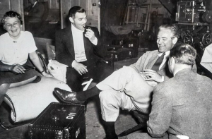 Актеры Виктор Джори, Барбара О’Нил и Оскар Полк на съемочной площадке
