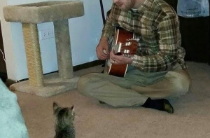 9. «Мой муж играет на гитаре, чтобы успокоить котенка в его первую ночь в нашем доме»
