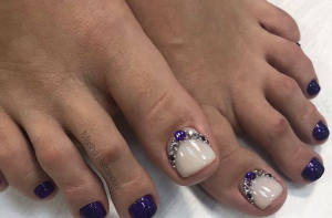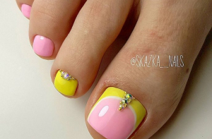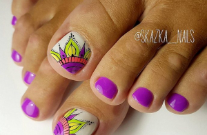 На смену однотонному педикюру пришли вот такие идеи: много страз, цветов, и вообще интересных рисунков.
