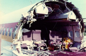 В этот самый момент, на высоте 7000 м, над первыми шестью рядами салона срывает обшивку фюзеляжа. В одну секунду комфортная тишина и прохлада салона сменяется для пассажиров ревущим ледяным (−45 °C) потоком воздуха, атакующим легко одетых людей со скоростью 500 км/ч.