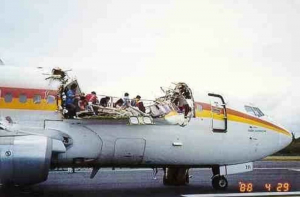 28 апреля 1988 года, Гавайи. Экипаж Боинга 737, рейс AQ 243, готовит машину к перелету из прибрежного города Хило в столицу Гавайских островов. Окончен сезон тропических циклонов, вокруг потрясающая природа курортного штата, светит жаркое солнце. Легко себе представить пеструю толпу расслабленных загорелых пассажиров в гавайских рубашках, восходящих на борт старенького «боинга» (самолету почти 20 лет), принадлежащего авиакомпании с милым названием Aloha Airlines.