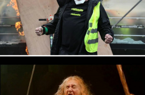 36. Посетительница парижского «Бургер Кинга» фотографирует пикетчиков через стекло