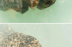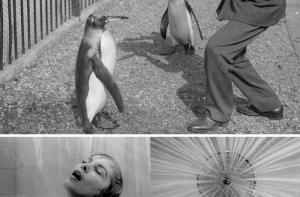 44. Смотритель зоопарка поливает пингвинов водой, чтобы спасти от жары
