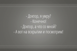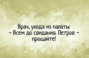 14 июня 2019, 16:32 Алексей ИвановПестрая подборка врачебного юмора ✕ Размер шрифта: 17px ✕ Ссылка скопирована! Пестрая подборка врачебного юмора.1.2.3.4.5.6.7.8.9.10.11.12.13.14.15.16.17.18.