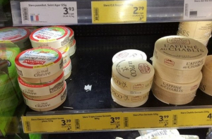 Кстати, часто по акции здесь можно найти и французские и итальянские сыры. Видите флажок французский? 250-350 рублей. Но по акции можно найти и дешевле.