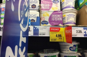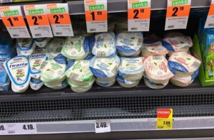 Можно по акции найти даже необычные сыры, с добавками и специями. С черникой неожиданно вкусно!