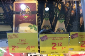 Сыр от 1,5 евро за пачку (150-250 грамм, зависит от фасовки). От 100 рублей то есть.