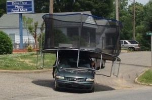 Главное, чтобы никто не прыгал на батуте во время езды.
