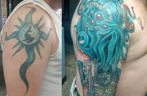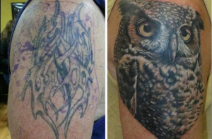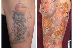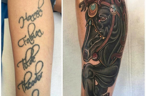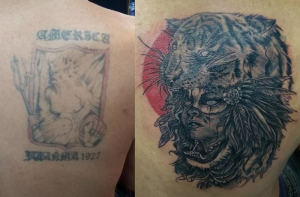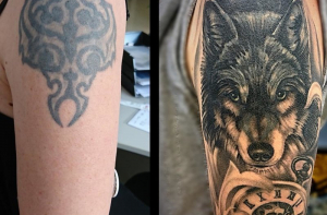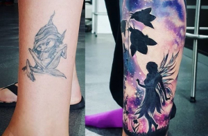 Люди, утверждающие, что татуировка делается раз и на всю жизнь, скорее всего мало знакомы с тату-культурой. От неудачных татуировок можно избавиться несколькими способами, один из которых - перекрытие, когда поверх старого рисунка наносят новый. Посмотрите на эти фотографии до и после и вы поймёте, что исправить можно всё что угодно.