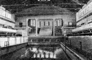 Здание с богатой историей… Построено в двадцатые годы, открыто в 1930-м, пережило войну, капитально реконструировано в 1957 году. Один из первых полноценных спортивных крытых, отапливаемых бассейнов в стране. Использовался по прямому назначению до 1990 года, потом был отдан под дельфинарий.