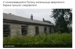 В этом сером бараке без окон на фото живёт уже 70 лет со своей семьёй Надежда Смирнова. В конце 1940-х барак был выделен как временное жильё, в 2014 был признан аварийным, но почему-то многократные обращения в администрацию Калужской области не имели никакого действия, про развалюху и жильцов, в ней живущих, забыли. И только лишь несколько дней назад, после жалобы жалобы Надежды Смирновой, отправленной на «Прямую линию» дело сдвинулось с мёртвой точки. По факту нарушения жилищных прав Следственный комитет начал проверку.