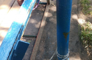 Это агенты специально привязывают скамейки. чтобы нашему человеку сиделось в самом неудобном месте