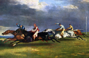 Положение ног лошадей на картине «Дерби 1821 года в Эпсоме», или «Скачки в Эпсоме», неверное: одновременно вытянутые в противоположные стороны задние и передние ноги создают эффект не бегущих, а парящих над землей животных. Ошибку на картине нашел фотограф Эдвард Мейбридж спустя 50 лет после ее создания. Да, на долю секунды скакуны отрывают от земли 4 ноги, но из-за особенностей анатомии это выглядит по-другому.