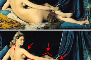 Спина одалиски, кажется, имеет больше позвонков, чем нужно. Ученые воспроизводили позу модели с полотна и пришли к заключению, что такой изгиб туловища повторить не удастся. Кроме того, правая рука слишком длинная, а левая нога неправильно изогнута в области колена.