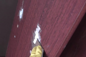 Зашпаклюйте акриловой шпаклевкой все неровности, которые есть на мебели.