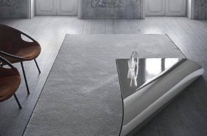 Функциональный дизайн ковра, плавно переходящего в журнальный столик