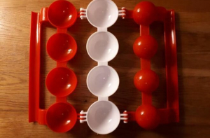 Компании, занимающиеся организацией выездного питания (кейтеринговые), используют такие подставки для тарелок с едой. Они размещаются на штырях черного цвета, а два красных – нужны для фиксации.