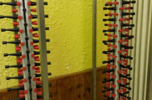 Этот аппарат предназначен для того, чтобы закупоривать винные бутылки пробками. Они вбиваются в горлышко при помощи штыря.