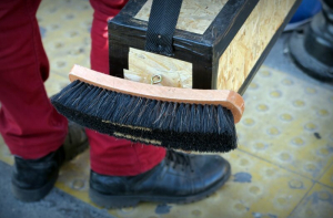 У этих чистильщиков всегда одинаковый набор инструментов: табуретка, чтоб клиент присел, деревянный ящик, чтоб клиент поставил на него ногу, и всяческие щётки, крема, и так далее. Одна щётка всегда висит на гвоздике сбоку этого ящика.