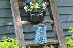 Даже старой посудой можно украсить дачу