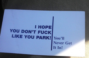 «Ты паркуешься как кретин. Пожалуйста, не размножайся».