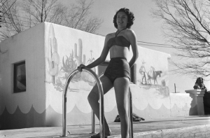 15. Участница конкурса красоты Джеки Ли Барнс позирует у бассейна в Альбукерке, Нью-Мексико, 1949 г. (Ed Clark-Time & Life Pictures/Getty Images)