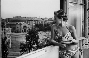 18. Французская модель Кристиан Ричард в бикини за утренним кофе, 1950 г. (Nat Farbman-Time & Life Pictures/Getty Images)