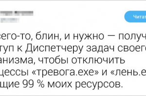 Ну что тут можно сказать? В вас ждет новая партия остроумных твитов от пользователей, которые знают толк в сарказме и остроумии. Пользователи поделились забавными мини-историями про владельцев машин и людей в туалетных кабинках, пьяных комаров и внутренних жаб, и многом другом.