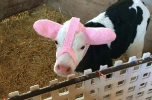 Бонус: милые вязаные шапочки для телят (спасают их нежные ушки от обморожения)