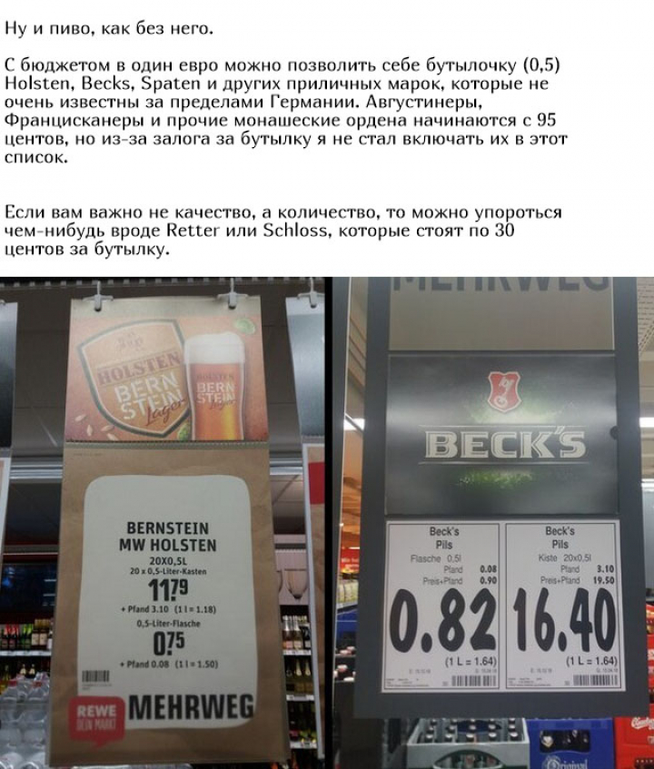 Вам интересно, что можно купить в Германии всего за 1 евро (примерно 71 рубль)? Тогда обязательно загляните далее. Самое интересное - это цены на пиво. А что можно купить у вас в городе за 1 евро? Сильно ли отличаются цены?