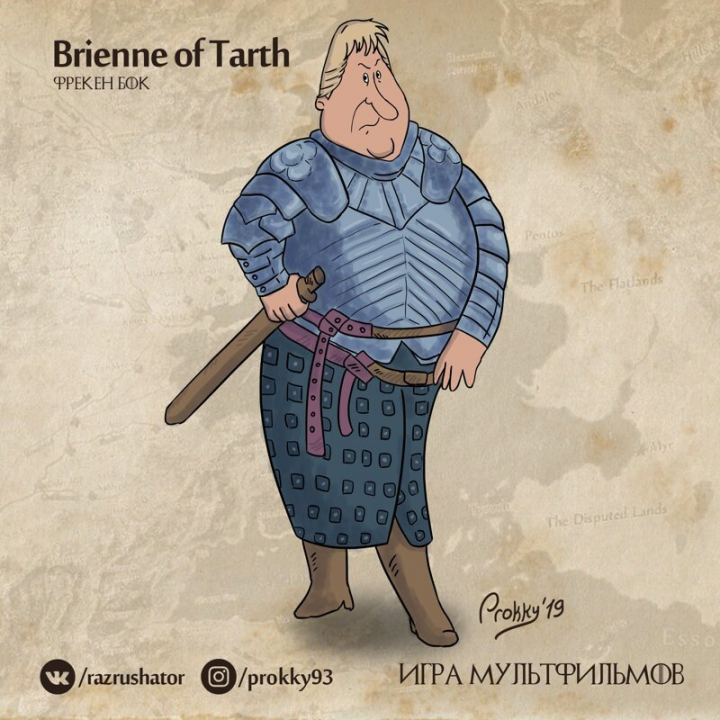 Однозначно самая боевая и волевая женщина всея «Союзмультфильма» Фрекен Бок отлично подходит на роль Бриенны Тарт. Единственное отличие - Фрекен Бок была более неравнодушна к рыжим мужчинам в самом расцвете сил