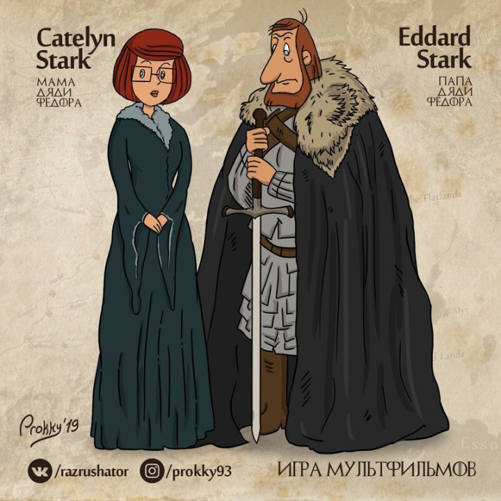 Спокойный и рассудительный Папа и любящая, но весьма боевая Мама из мультфильма «Трое из Простоквашино» - неплохие претенденты на роль Кейтилин и Неда Старков