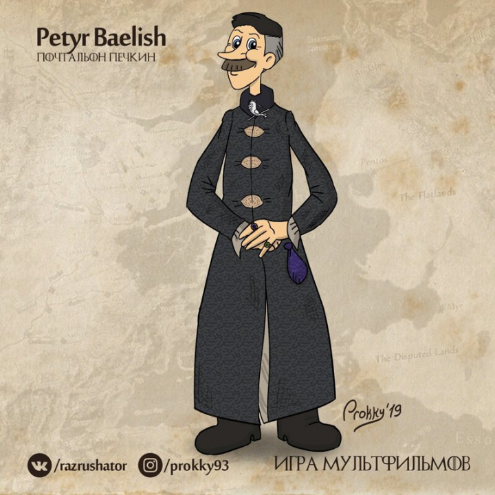 Вроде бы посылку принёс, а вроде и не отдаёт. Вот так же и Петир Бейлиш расчётливо дёргал на ниточки, а многие фанаты упорно желали его видеть на Железном троне в финале сериала. Но не срослось. Ну и внешность, конечно же, весьма подходящая!