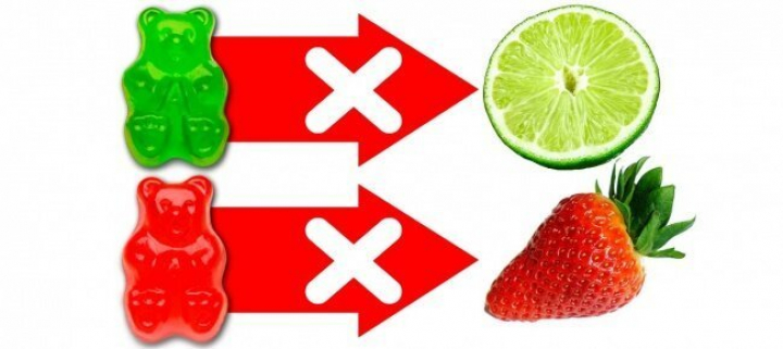 Зеленый мишка на самом деле не имеет в составе лайма, как и розовый - клубники.
