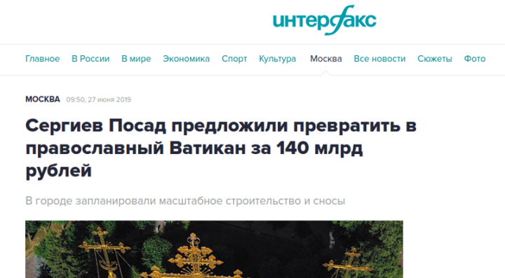 19. Вместо эпилога: Сергиев Посад предложили превратить в православный Ватикан за 140 млрд рублей