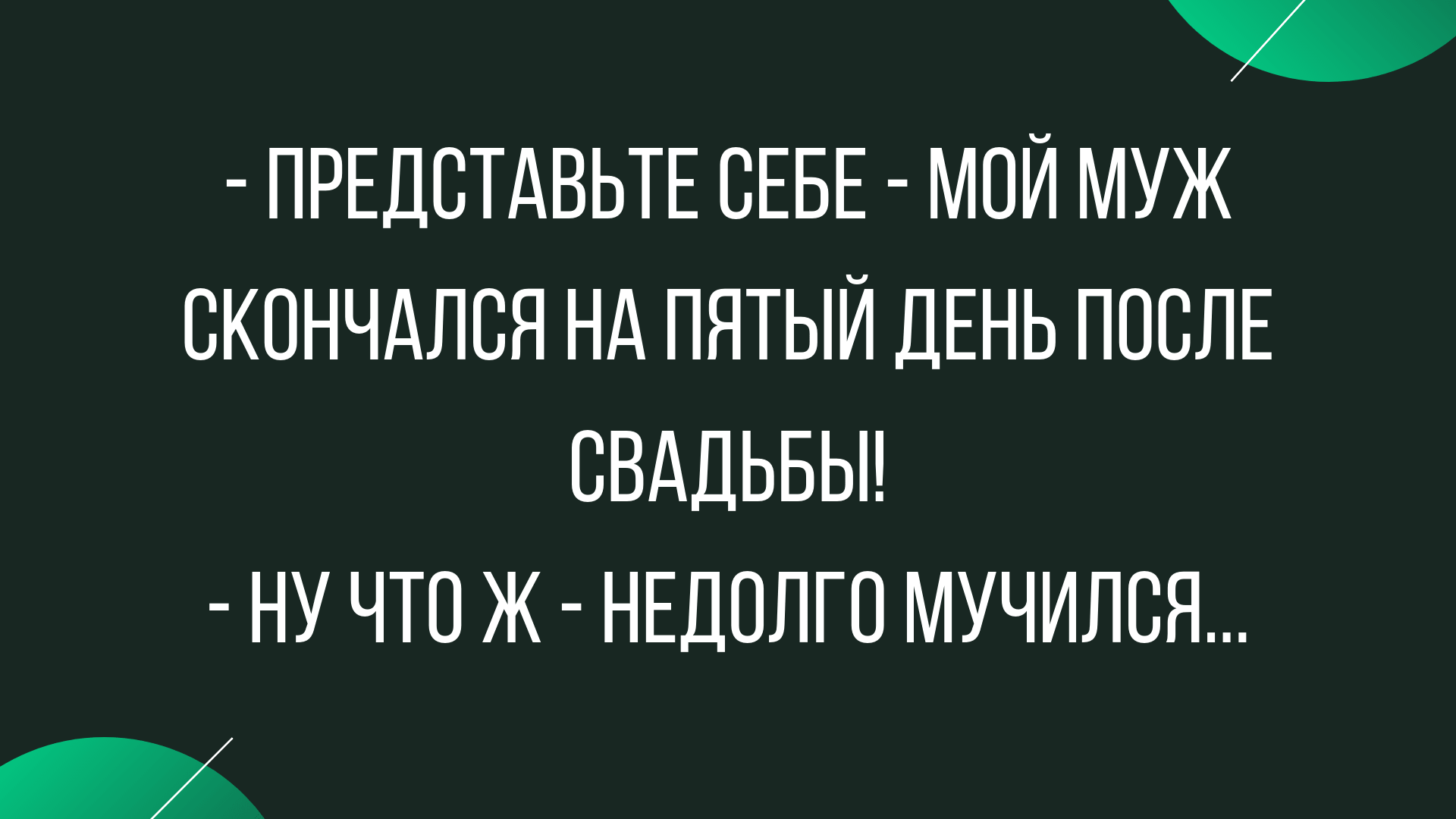 Сосед работает в Бюро ритуальных услуг. Каждое утро жена его долго будит со словами: «Миша, вставай! Тебе давно пора на кладбище!».