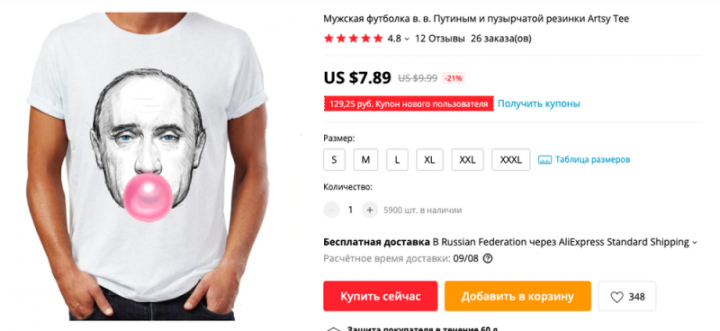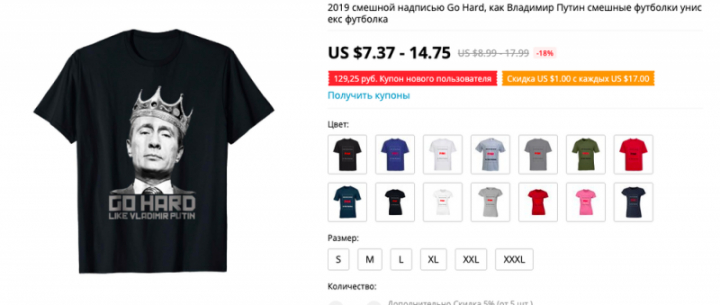 Китайцы знают толк, как зарабатывать деньги и умеют в одночастье штамповать товары, которые пользуются широким спросом. Владимир Путин в последнее время занимает чуть ли не первые полки алиэкспресса. Куда ни глянь, везде он.