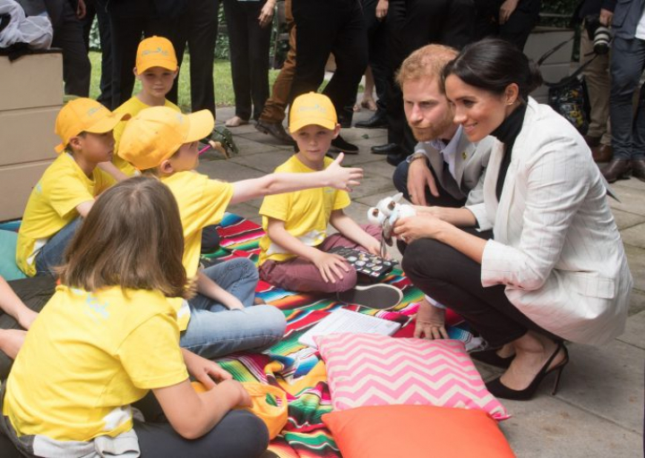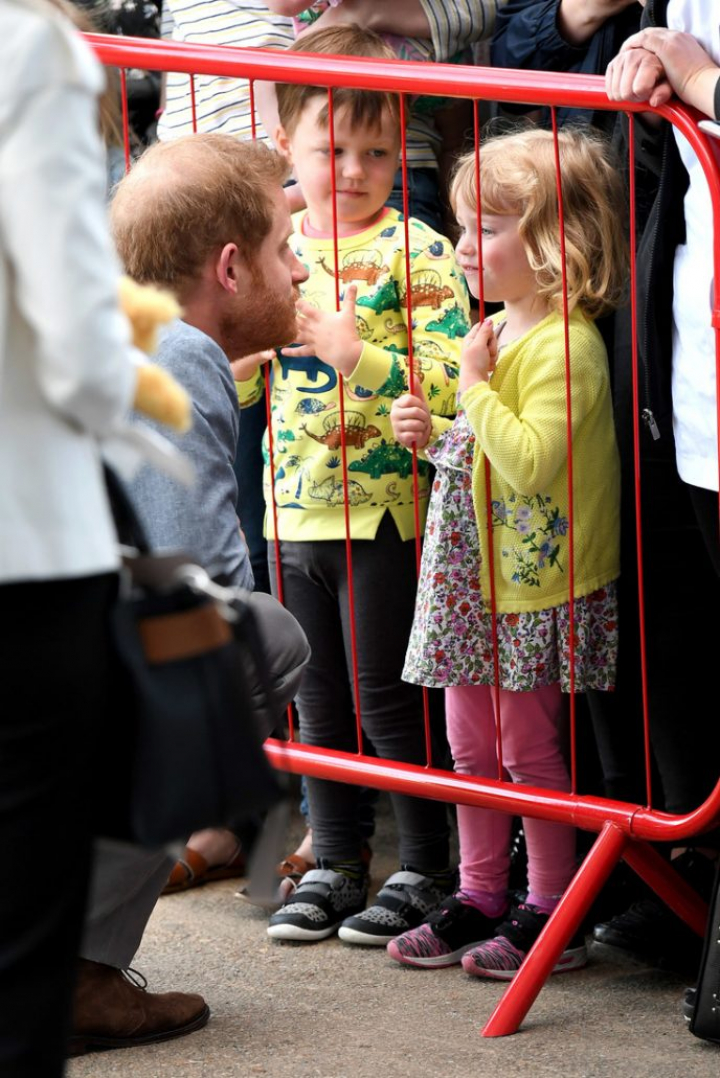 Принц Гарри перенял эту привычку от матери и всегда, когда он общается с детьми, то садиться на пол или на корточки.