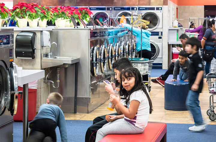 В-третьих, современные общественные прачечные создают довольно высокий уровень комфорта для клиентов. Помимо стиральных машин там предусмотрены сушильные машины, аппараты для глажки и прочие приспособления, существенно облегчающие процесс. В последнее время в прачечных можно встретить телевизоры, бесплатный Wi-Fi и кофейные автоматы, позволяющие клиентам приятно провести время. Как правило, подавляющее большинство американских общественных прачечных работает круглосуточно, располагаясь в подвалах многоквартирных домов либо в непосредственной близости от супермаркетов, то есть пользоваться ими могут даже очень занятые люди.
