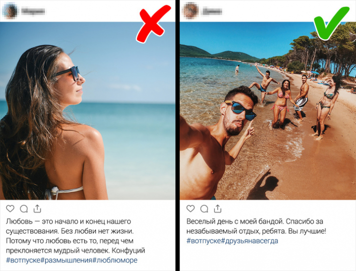 Когда-то такие фотографии, возможно, и смотрелись оригинально. Сегодня мода на любительские постановочные снимки прошла. Фото, на котором вы многозначительно смотрите куда-то в сторону, - не всегда удачное решение. Часто подобные посты сопровождаются мудрыми цитатами, не имеющими никакого отношения к самой картинке.