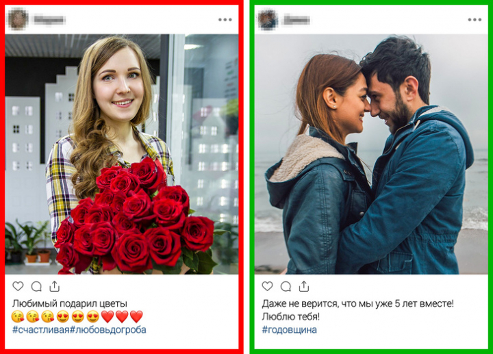 Если вы хотите прокричать миру о ваших чувствах, можете попробовать сделать это красиво. Подумайте над текстом: он должен быть от чистого сердца. А о вашей любви никакие цветы не скажут так, как это сделают ваши счастливые глаза на совместном селфи с любимым человеком.