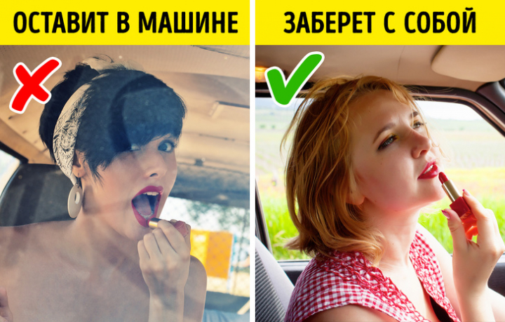 Многие дамы любят оставлять помаду в машине, чтобы всегда была возможность подкрасить губы в пробке или при выходе из авто. Но делать этого не стоит. Дело в том, что помаду губят и холод, и тепло. А в машине зимой слишком холодно, а летом - слишком жарко.
