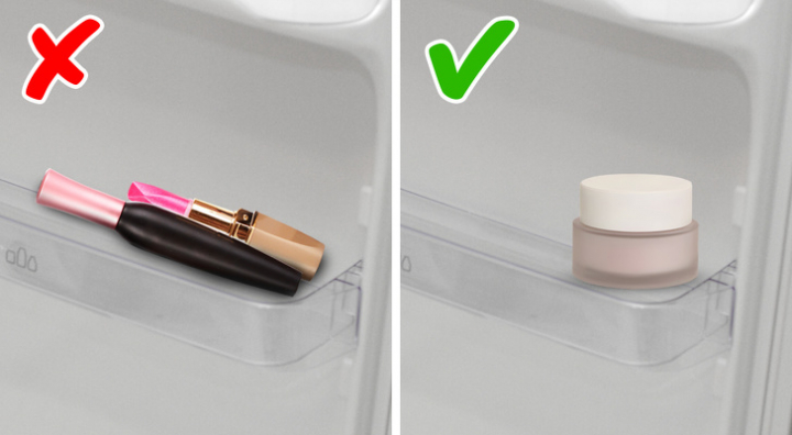 Кремы и сыворотки органической косметики или предназначенные для ухода за кожей вокруг глаз можно хранить в холодильнике. Остальным косметическим продуктам лучше отвести темное прохладное место в комнате. По словам врача-дерматолога, жиры, которые содержатся в бьюти-продуктах, при низких температурах меняют консистенцию и застывают. Поэтому, прежде чем использовать охлажденное средство, его придется согреть. Но тогда возникает перепад температуры, который разрушает активные вещества.