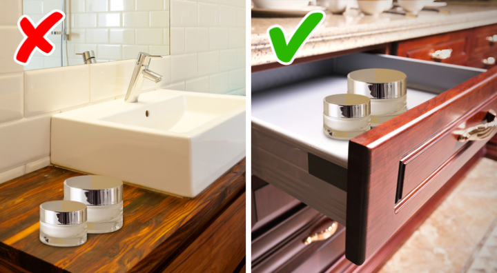 В ванной комнате высокая влажность, а это идеальная среда для размножения бактерий. К тому же в этом месте часто случаются перепады температур и бывает слишком жарко. Эти факторы вредят косметике.