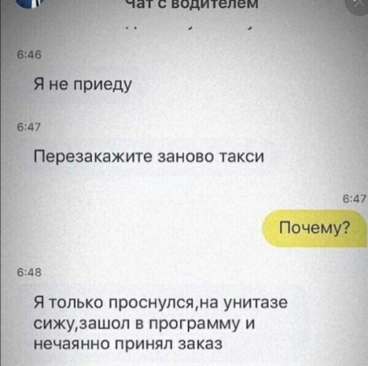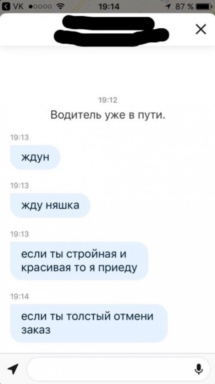 7 августа 2019, 08:35 Алексей ИвановСмешные чаты с водителями такси ✕ Размер шрифта: 17px ✕ Ссылка скопирована! У некоторых водителей такси бывают очень непростые взаимоотношения со своими пассажирами. Во всяком случае, их переписку нельзя назвать скучной и обыденной…